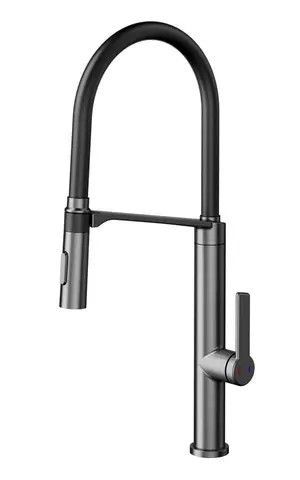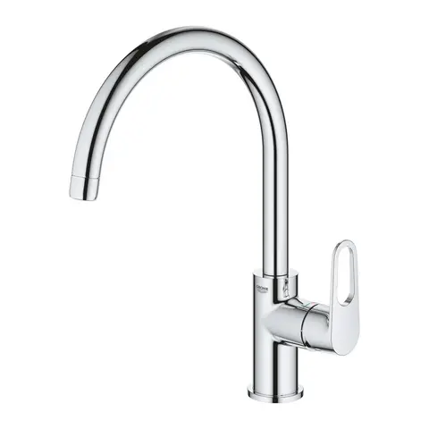 La mezcladora Almada de Aqualía de forma curva puede ser combina con diferentes fregaderos, ofreciéndole a su espacio un aspecto moderno y elegante.
